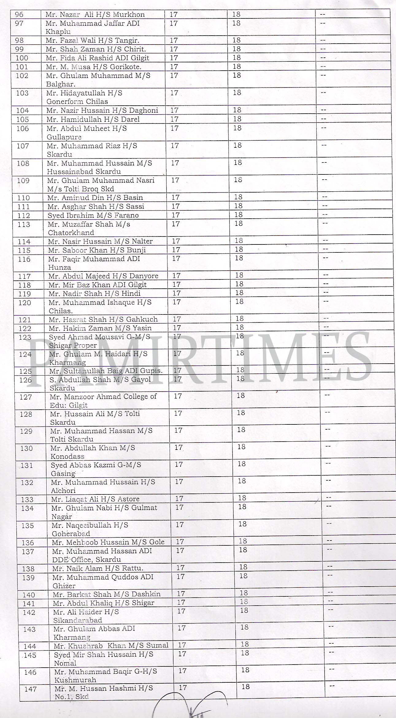 Gilgit, June 10: The Directorate of Education Gilgit-Baltistan has upgraded the Basic Pay Scales of 149 teachers from across Gilgit-Baltistan under the 4-Tier Service Structure, effective from 28 January 2002.